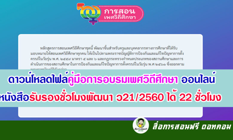 ดาวน์โหลดคู่มือ การอบรมเพศวิถีศึกษา ออนไลน์ รับรองชั่วโมงพัฒนา ว21/2560 ได้ 22 ชั่วโมง