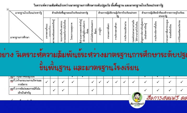 ตัวอย่างวิเคราะห์ความสัมพันธ์ระหว่างมาตรฐานการศึกษาระดับปฐมวัย ขั้นพื้นฐาน และมาตรฐานโรงเรียน