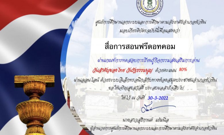 ขอเชิญทำแบบทดสอบกิจกรรมส่งเสริมการอ่านความรู้ วันสำคัญของไทยวันรัฐธรรมนูญโดยห้องสมุดประชาชนอำเภอหัวหิน จังหวัดประจวบคีรีขันธ์