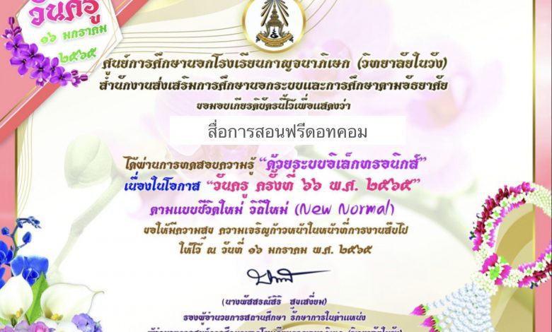 ขอเชิญทำแบบทดสอบออนไลน์ เนื่องในโอกาส วันครู ครั้งที่ 66 พ.ศ.2565 ตามแบบชีวิตใหม่ วิถีใหม่ (New Normal)
