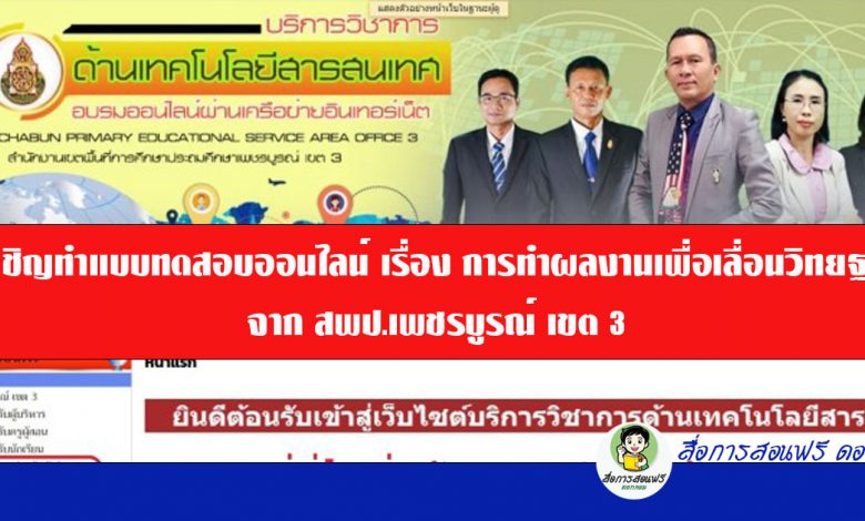 แบบทดสอบออนไลน์ เรื่อง การทำผลงานเพื่อเลื่อนวิทยฐานะ สพป.เพชรบูรณ์ เขต 3 มาฝากคุณครูและท่านผู้อ่านทุกท่านครับ