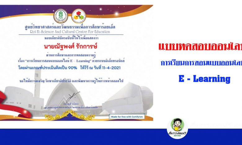 ขเชิญทำแบบทดสอบออนไลน์ การเรียนการสอนแบบออนไลน์ E – Learning โดย ศูนย์วิทยาศาสตร์และวัฒนธรรมเพื่อการศึกษาร้อยเอ็ด