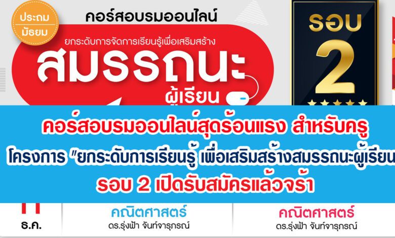 คอร์สอบรมออนไลน์สุดร้อนแรง สำหรับครู โครงการ “ยกระดับการเรียนรู้ เพื่อเสริมสร้างสมรรถนะผู้เรียน” เปิดรับสมัคร รอบ 2 รับจำนวนจำกัด