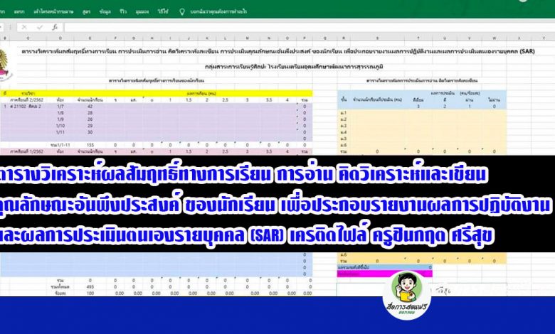 เป็นการเผยแพร่ผลงาน : ตารางวิเคราะห์ผลสัมฤทธิ์ทางการเรียน การอ่าน คิดวิเคราะห์และเขียน คุณลักษณะอันพึงประสงค์ ของนักเรียน เพื่อประกอบรายงานผลการปฏิบัติงานและผลการประเมินตนเองรายบุคคล (SAR) ดาวน์โหลดฟรี ของคุณครูชินกฤต ศรีสุข