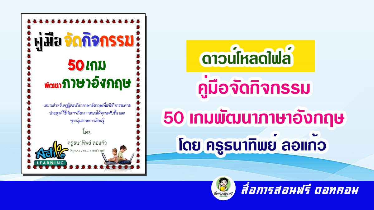 สวัสดีครับคุณครูทุกท่าน วันนี้ สื่อการสอนฟรี ดอทคอม ขอนำเสนอดาวน์โหลดไฟล์ คู่มือจัดกิจกรรม เกม ภาษาอังกฤษ โดยครูธนาทิพย์ ลอแก้ว ครับ