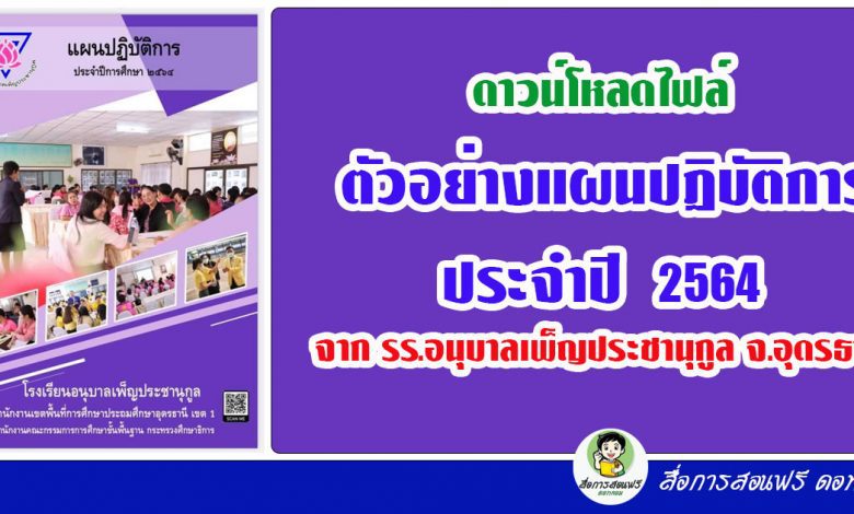 เผยแพร่ไฟล์ตัวอย่าง แผนปฏิบัติการประจำปี 2564 จาก รร.อนุบาลเพ็ญประชานุกูล จ.อุดรธานี