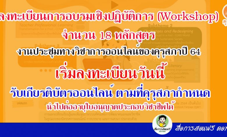 ด่วน… ลงทะเบียนวันนี้ การอบรมเชิงปฏิบัติการ (Workshop) จำนวน 18 หลักสูตร งานประชุมทางวิชาการออนไลน์ของคุรุสภาปี 64
