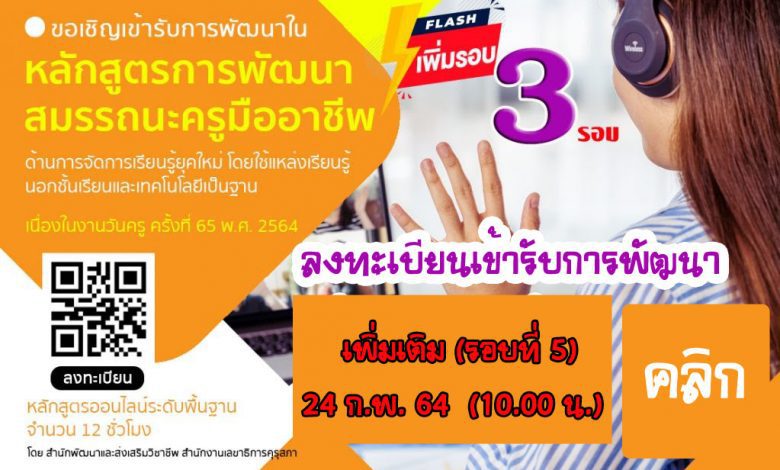 ด่วน..ลงทะเบียนอบรมออนไลน์ คุรุสภา นับชั่วโมงว.21 ได้ หลักสูตรการพัฒนาสมรรถนะครูมืออาชีพ ด้านการจัดการเรียนรู้ยุคใหม่ รอบ 5 24 ก.พ. 2564