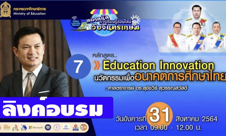 link เข้าอบรบหลักสูตรที่ 7 Education Innovation นวัตกรรมเพื่ออนาคตการศึกษาไทย : ศ.ดร.สุชัชวีร์ สุวรรณสวัสดิ์ (31 สิงหาคม 2564 เวลา 9.00-16.30)