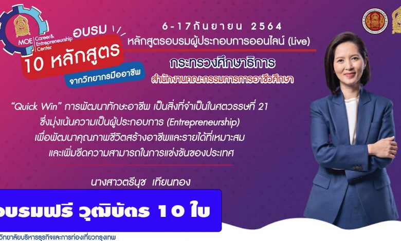 ลงทะเบียนอบรมฟรี มีวุฒิบัตร 10 หลักสูตรอบรมผู้ประกอบการออนไลน์ ระหว่างวันที่ 6-17 กันยายน 2564