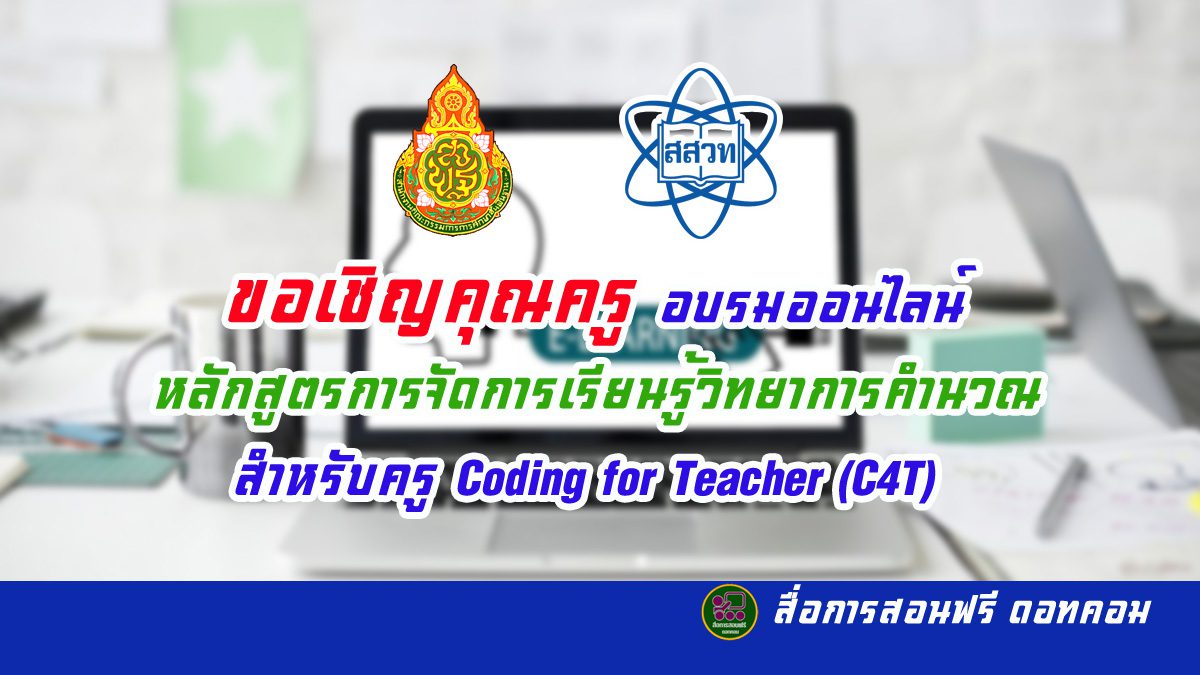 ขอเชิญคุณครูเข้าร่วม อบรมออนไลน์ หลักสูตรการจัดการเรียนรู้วิทยาการคำนวณสำหรับครู Coding for Teacher (C4T) ภายใต้นโยบาย “การขับเคลื่อนการจัดการเรียนรู้โค้ดดิ้งในโรงเรียน”