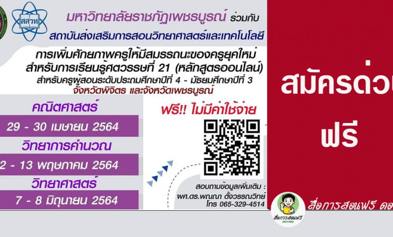 ระยะเวลาการอบรม: เมษายน – มิถุนายน 2564 (โปรดตรวจสอบกับ มรภ. ที่มีเขตพื้นที่บริการในจังหวัดของท่าน)
